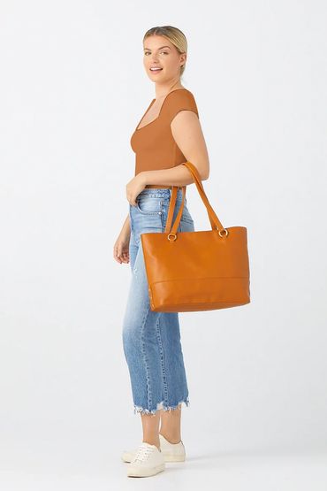 HAMMITT: An extra top-zipper for easy access. This versatile leather features our classically pebbled texture.